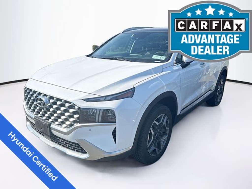 Recent Arrival! 2023 Hyundai Santa Fe Plug-In Hybrid Limited I4 6-Speed Automatic with Shiftronic AWD 4D Sport Utility Serenity White Pearl Factory Certified Vehicle, 5 Day Return / 30 Day Exchange, Auto Reward Program, I4, AM/FM radio: SiriusXM, Apple CarPlay & Android Auto, Auto High-beam Headlights, Auto-dimming Rear-View mirror, Automatic temperature control, Exterior Parking Camera Rear, Front dual zone A/C, Fully automatic headlights, Garage door transmitter: HomeLink, harman/kardon® Speakers, Heated & Ventilated Front Bucket Seats, Heated door mirrors, Heated front seats, Heated rear seats, Heated steering wheel, Leather Seat Trim, Memory seat, Navigation System, Power door mirrors, Power driver seat, Power Liftgate, Power moonroof, Power passenger seat, Rain sensing wipers, Remote keyless entry, Steering wheel mounted audio controls, Ventilated front seats.