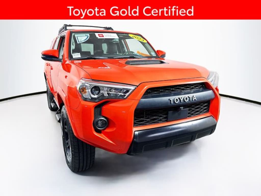 Recent Arrival! 2023 Toyota 4Runner TRD Pro 4.0L V6 DOHC 24V 5-Speed with ECT 4WD 4D Sport Utility Solar Octane Local Trade, Great Service History, 5 Day Return / 30 Day Exchange, Auto Reward Program, 4Runner TRD Pro, 4D Sport Utility, 4.0L V6 DOHC 24V, 5-Speed with ECT, 4WD, Solar Octane, Black/Graphite w/Leather Seat Trim.